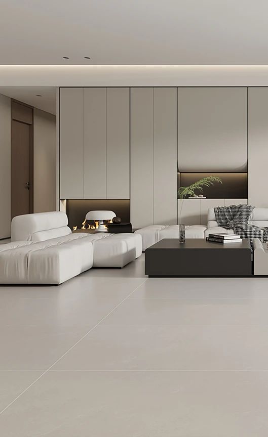 鵲踏枝色調素雅溫馨,750X1500mm黃金比例通鋪地麵,搭配米灰色家具仿佛被陽光包圍,低調中散發著淡淡光芒,讓人不知不覺間沉醉其中。