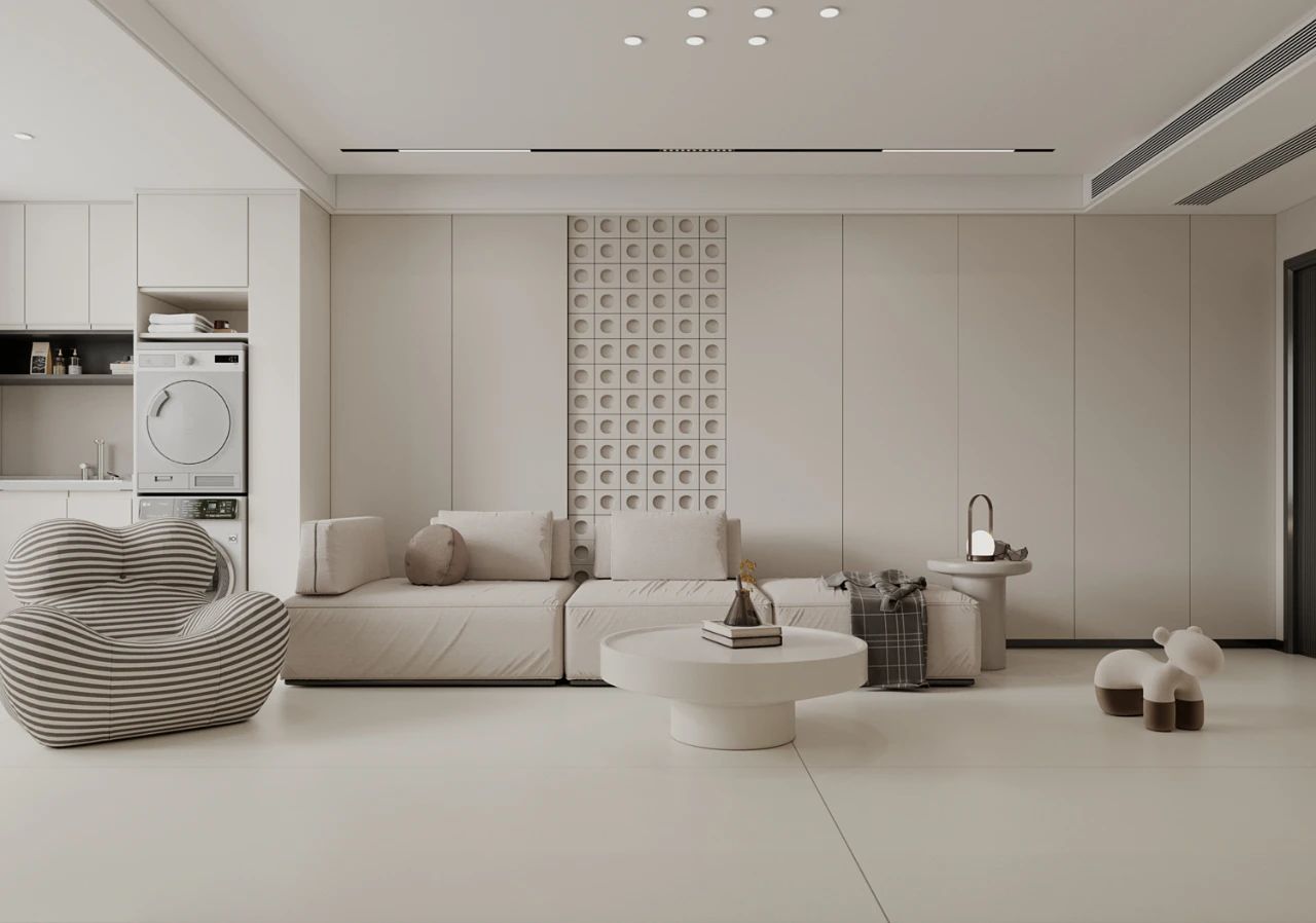 相比灰色係的沉穩低調,治愈係的米黃色係更容易烘托出家庭的溫馨感覺。